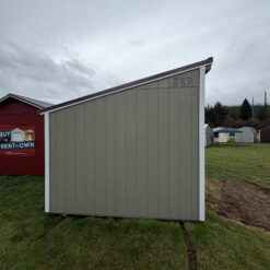 This 10×20 Single Slope shed is built for those who want more than just storage. With its clean roofline and contemporary styling, it’s ideal for a backyard office, studio, workshop, or high-end storage solution. The exterior features Hardware painted siding, a Burnished Slate metal roof, and Barn White trim, creating a sharp, modern aesthetic.