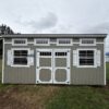 This 10×20 Single Slope shed blends modern design with functional durability, making it ideal for a backyard office, creative studio, workshop, or premium storage space. The contemporary roofline pairs beautifully with the Peppercorn painted siding, Black metal roof, and crisp Barn White trim for a bold, architectural look.